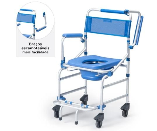 - Inclui apoios de braços escamoteáveis (retrátil), que oferecem praticidade para o uso e conforto para o paciente;