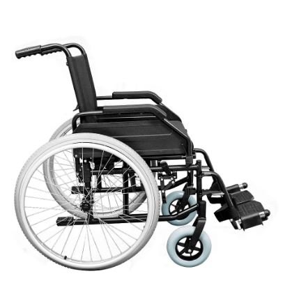 – Rodas traseiras de 24” em alumínio, com aro de propulsão e pneus antifuro em PU.