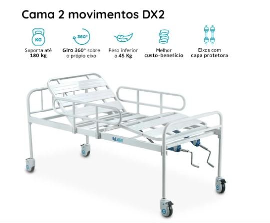 A Cama de 2 Movimentos Dellamed é uma escolha ideal para pessoas que estão acamadas ou que necessitam passar longos períodos deitadas. Equipada com grade de proteção para garantir a segurança do paciente, a cama DX oferece durabilidade e estabilidade. Seu sistema deslizante silencioso, acionado por duas manivelas manuais, permite ajustar confortavelmente a posição da cama conforme as necessidades do usuário, oferecendo até 5 posições diferentes. Essa cama é especialmente projetada para facilitar a circulação sanguínea, sendo uma opção recomendada para uso domiciliar e em ambientes hospitalares.