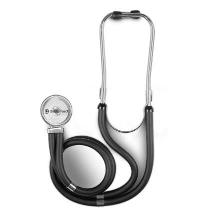 - Possui uma cabeça de sino e uma cabeça de diafragma em cada extremidade do auscultador
