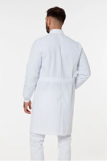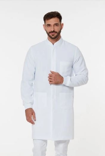 Jaleco masculino com gola padre, bolso frontal e lateral. Um modelo diferenciado no estilo esporte, para aquele profissional que deseja manter o conforto no dia a dia de trabalho.